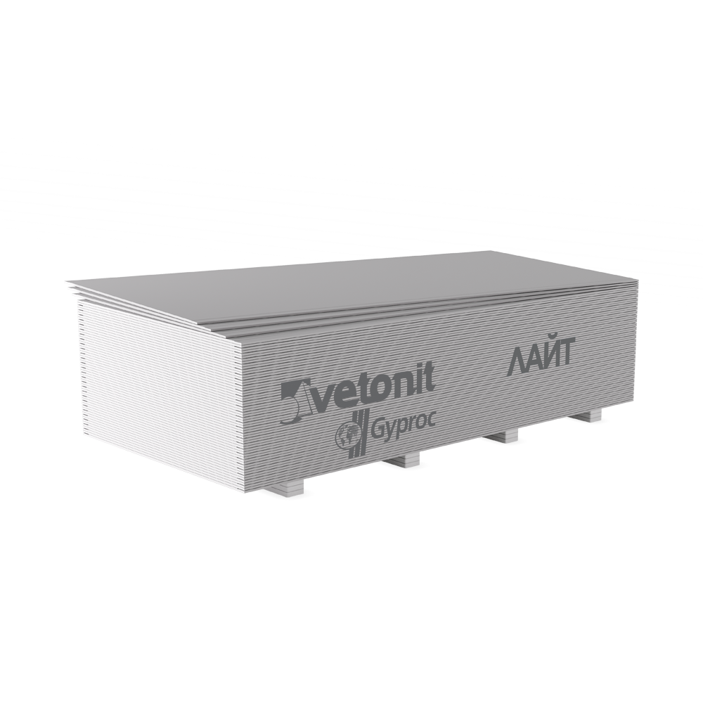 Vetonit (Gyproc) Лайт гипсовая плита 2500х1200х9.5 УК(198м2-66шт/пал)