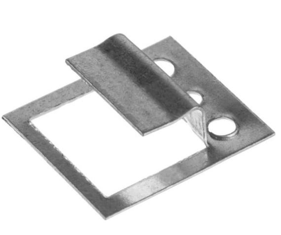 $Это металлическая скоба, которая крепится к каркасу с помощью небольших гвоздиков.$Изготавливается данный вид крепежных изделий из оцинкованной стали толщиной 0,55 мм.$Они совершенно не видны при правильной установке, внешний вид отделочного покрытия не нарушается, а демонтаж можно произвести в любое время не нарушая целостности материала.$