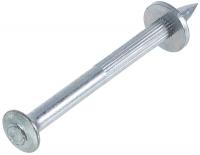 Дюбель-гвоздь для монтажного пистолета применяется для быстрого монтажа крепежных деталей (уголков, скоб, хомутов, кронштейнов, брусков из дерева) и несъемного крепления различных тонкостенных материалов к бетону и кирпичу или камню. Конструкция представляет собой стальной гвоздь с подвижной шайбой, которая отвечает за центровку и фиксацию элемента в монтажном пистолете. Цинковое покрытие защищает металл от коррозии и предотвращает появление ржавых пятен.