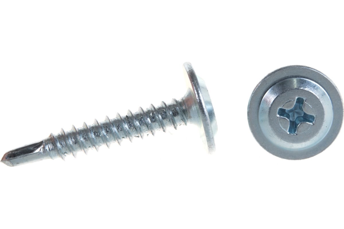 Саморез для крепления листов металла до 2 мм, полусферическая головка с пресс-шайбой, шлиц PHILLIPS №2, наконечник-сверло, оцинкованный. Саморезы с пресс-шайбой предназначен для монтажных работ, соединения элементов металла, тонколистовой стали. Саморезы имеют резьбу с мелким шагом. Наличие сверла необходимо для крепления к металлической или пластиковой основе толщиной до 2 мм. Полукруглая головка с пресс-шайбой предназначена для более плотной фиксации скрепляемых материалов.