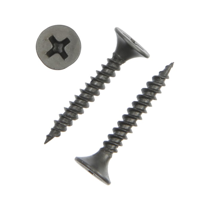 Саморез частый шаг, 3,5х25 мм, чёрный фосфат является отличным средством для использования в целях выполнения качественного крепления листов гипсокартона к металлическому основанию (толщиной до 1 мм). По своей конструкции изделие представляет собой стержень с частой резьбой, на котором размещена потайная головка. Головка самореза, в свою очередь, имеет крестообразный шлиц, что позволяет проводить монтаж не только с использованием дрелей-шуруповёртов с соответствующей битой, но и при помощи обычной отвёртки. Как правило, саморез вкручивают с предварительным сверлением. Крепёж изготовлен из надёжной углеродистой стали с фосфатированным покрытием (чёрная глазурь), защищающим от возникновения коррозии.