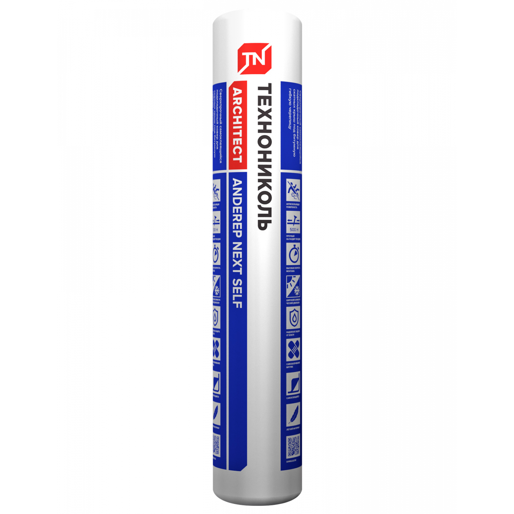 Полностью самоклеящийся сверхпрочный подкладочный ковер, получаемый путем нанесения на верхнее покрытие – полимерную многослойную армированную ткань – битумно-полимерного вяжущего с добавлением СБС полимеров, с последующей защитой нижней стороны съемной силиконизированной пленкой. На верхнем слое материала нанесены логотипы и разметка.