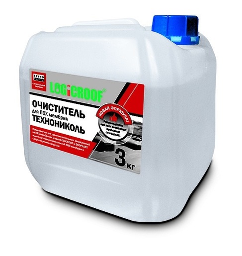 Очиститель предназначен для удаления локальных загрязнений с поверхности ПВХ мембран марки LOGICROOF и ECOPLAST и подготовки поверхности ПВХ мембран перед сваркой. Также может применяться для очистки инструмента. Расход – 0,25 л Очистителя на 1 м² загрязнённой ПВХ мембраны.