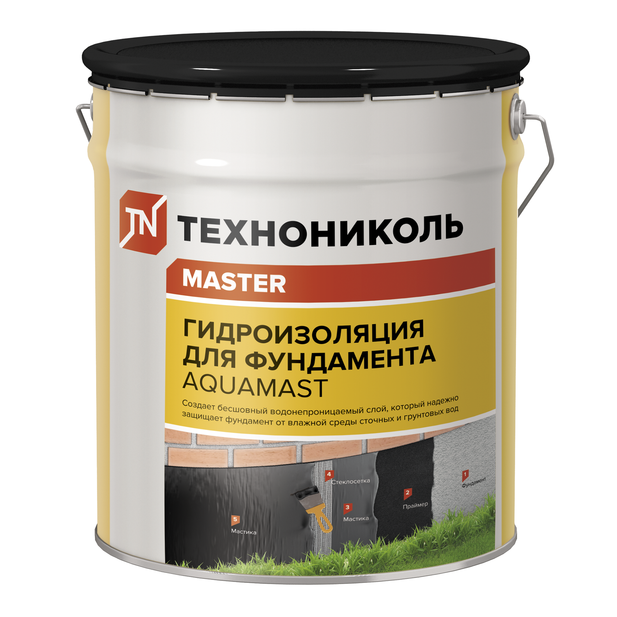 Мастика гидроизоляционная битумная для фундаментов AquaMast представляет собой полностью готовый к применению материал на основе нефтяного битума, содержащий технологические добавки, минеральные наполнители и растворитель. Предназначена для обмазочной гидроизоляции конструкций (бетонных, железобетонных, металлических, деревянных и др.), заглубляемых в землю и контактирующих с влажной средой: фундаментов, свай и т.п. Расход мастики на 1 слой составляет 1 кг/м2 .