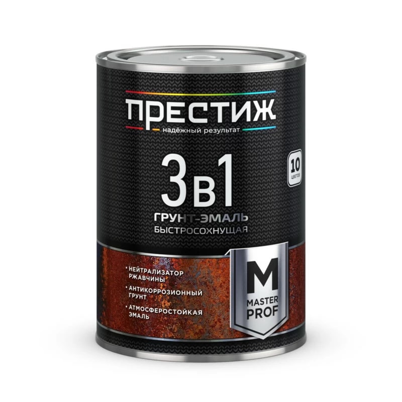 Грунт-эмаль по ржавчине Престиж, красная, 0,9 кг для работ снаружи и внутри помещения. Объединяет свойства 3 продуктов: преобразователя ржавчины, антикоррозионного грунта и декоративной эмали. Экономит время и средства. Легко наносится, хорошо растекается. После высыхания образует однородное гладкое полуглянцевое атмосферостойкое покрытие стойкое к мытью и истиранию, воздействию воды, растворов моющих средств и хлористого натрия. Выдерживает колебания температур от -50 до +60ºС.