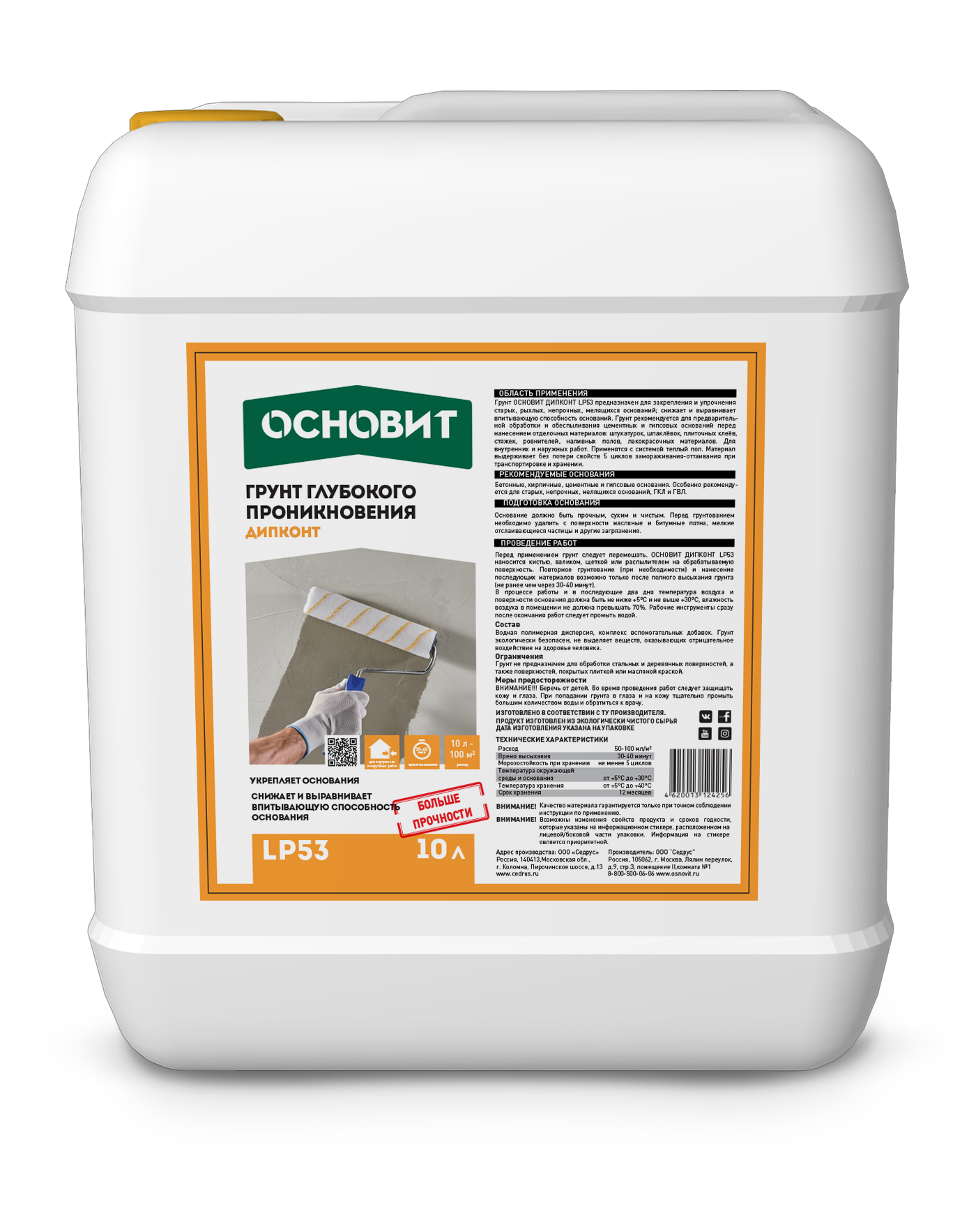 Грунт Основит Дипконт LP53 обладает высокой проникающей способностью и быстро высыхает, что позволяет сократить время проведения работ и повысить производительность. Морозостойкость продукта составляет 5 циклов замораживания-оттаивания, что гарантирует его стабильность и сохранение свойств даже при отрицательных температурах.