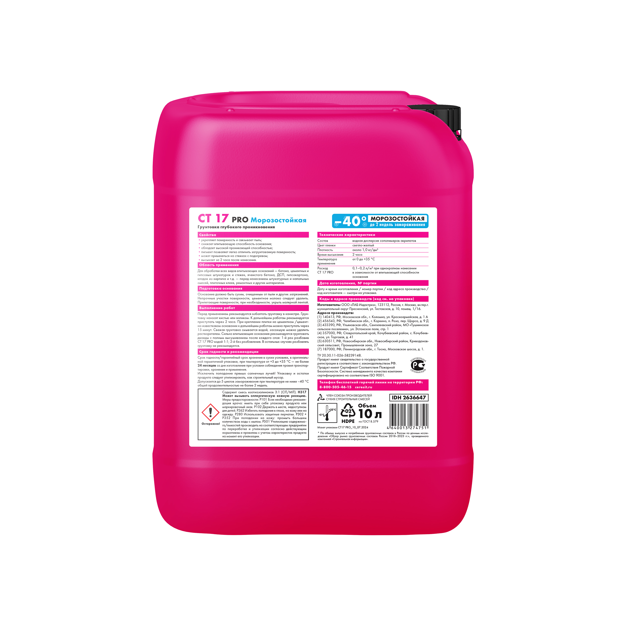 СТ 17/10 PRO ЦЕРЕЗИТ Грунтовка универсальная глубокого проникновения МОРОЗОСТОЙКАЯ 10 л
