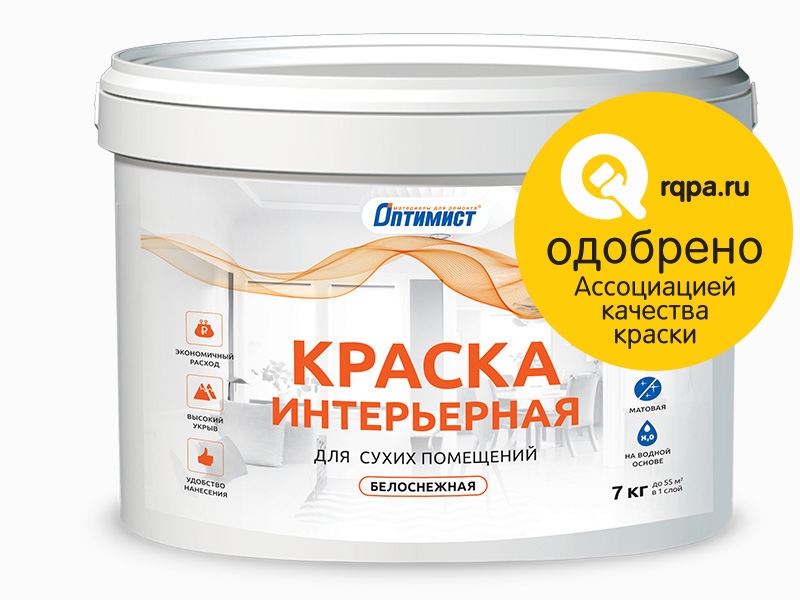 Краска в/д интерьерная глубокоматовая для стен и потолков ОПТИМИСТ Ekonomi 10 л