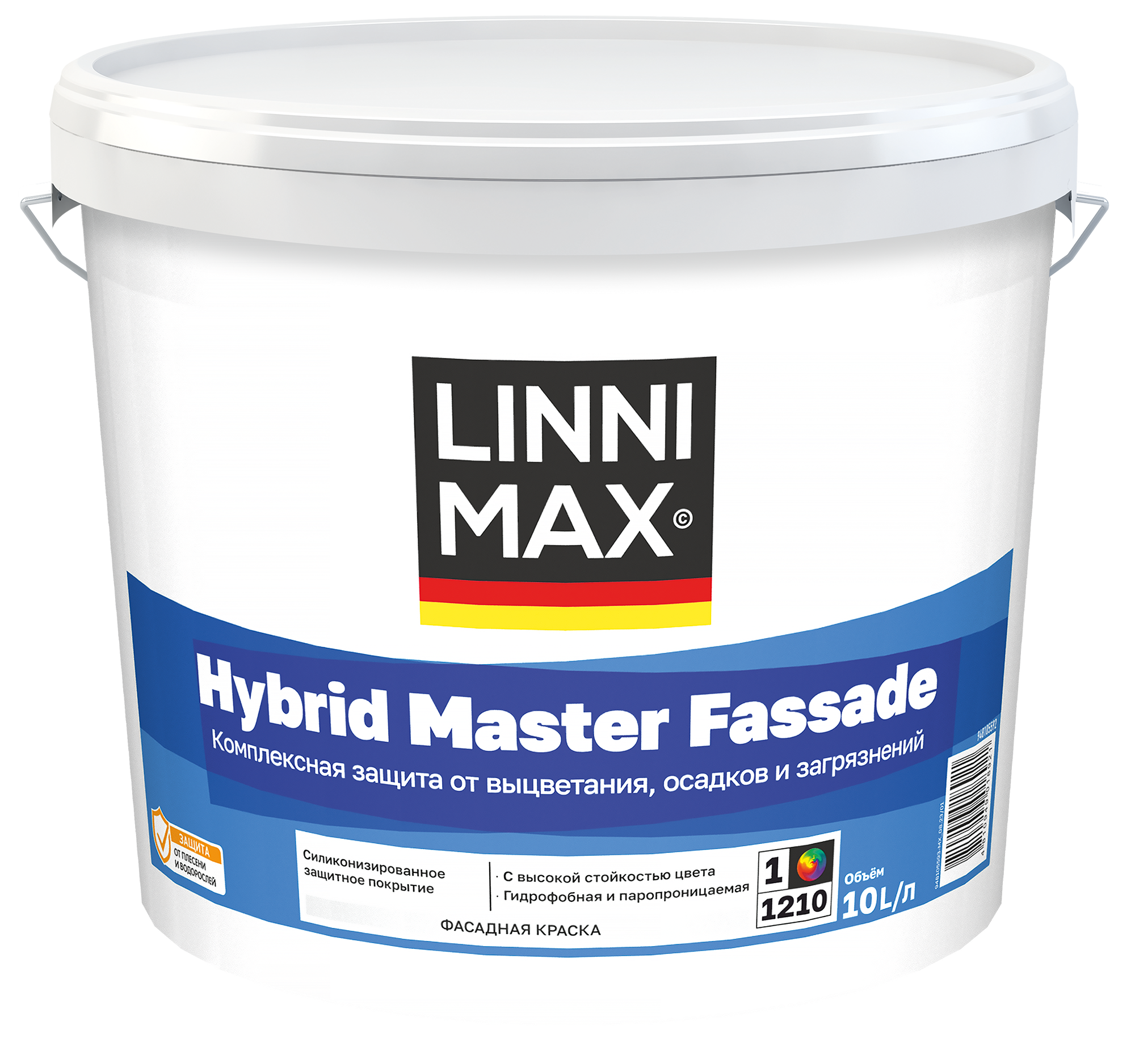 Краска силикон модифицированная для наружных работ LINNIMAX Hybrid Master Fassade База 1 10л (S) — это высококачественное покрытие, предназначенное для защиты фасадов зданий от негативных погодных условий, таких как дождь, снег, солнечные лучи и перепады температур.