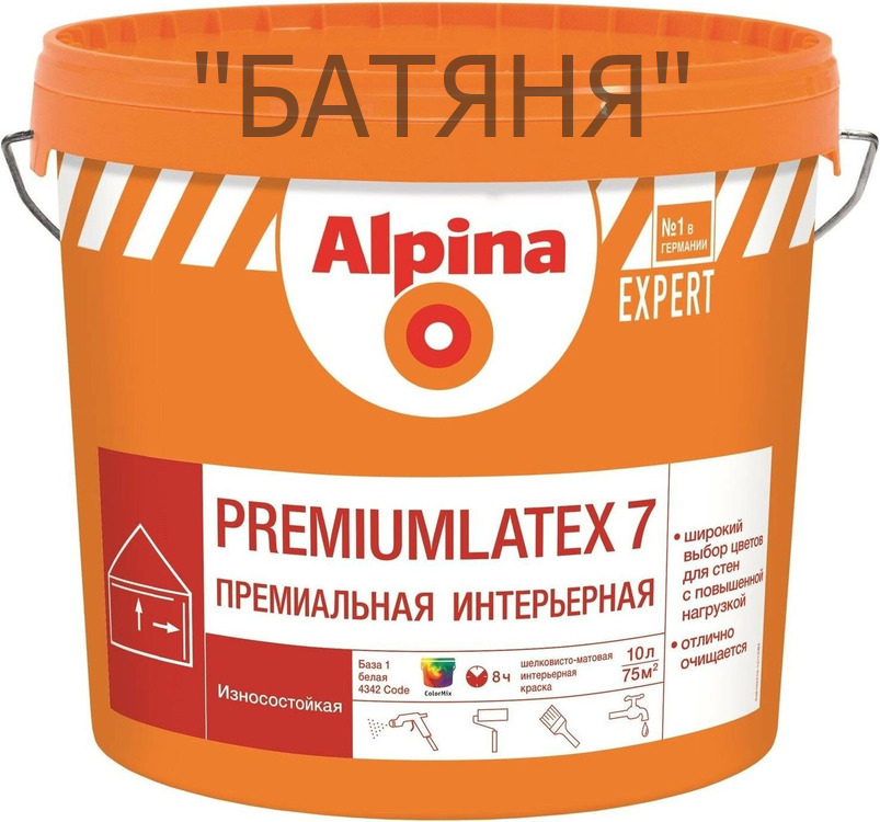 Краска для внутренних работ Alpina EXPERT Premiumlatex 7/Премиумлатекс 7 База 1, 10 л.