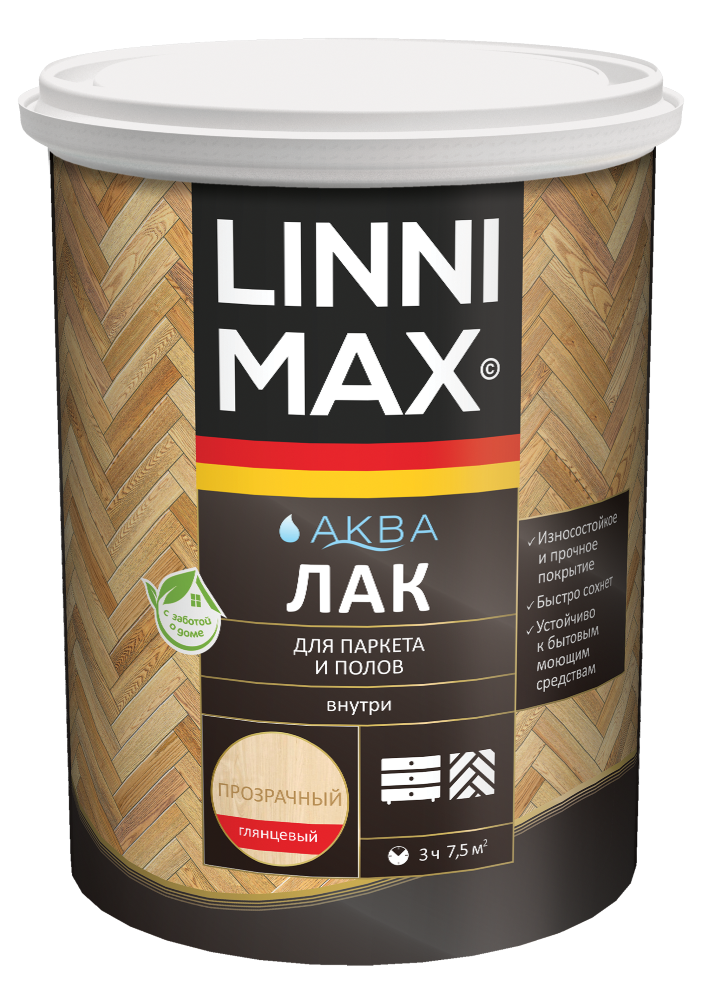 LINNIMAX Аква Лак для дерева — акриловый водно-дисперсионный лак для защиты и декоративной отделки деревянных поверхностей и минеральных оснований внутри помещений.