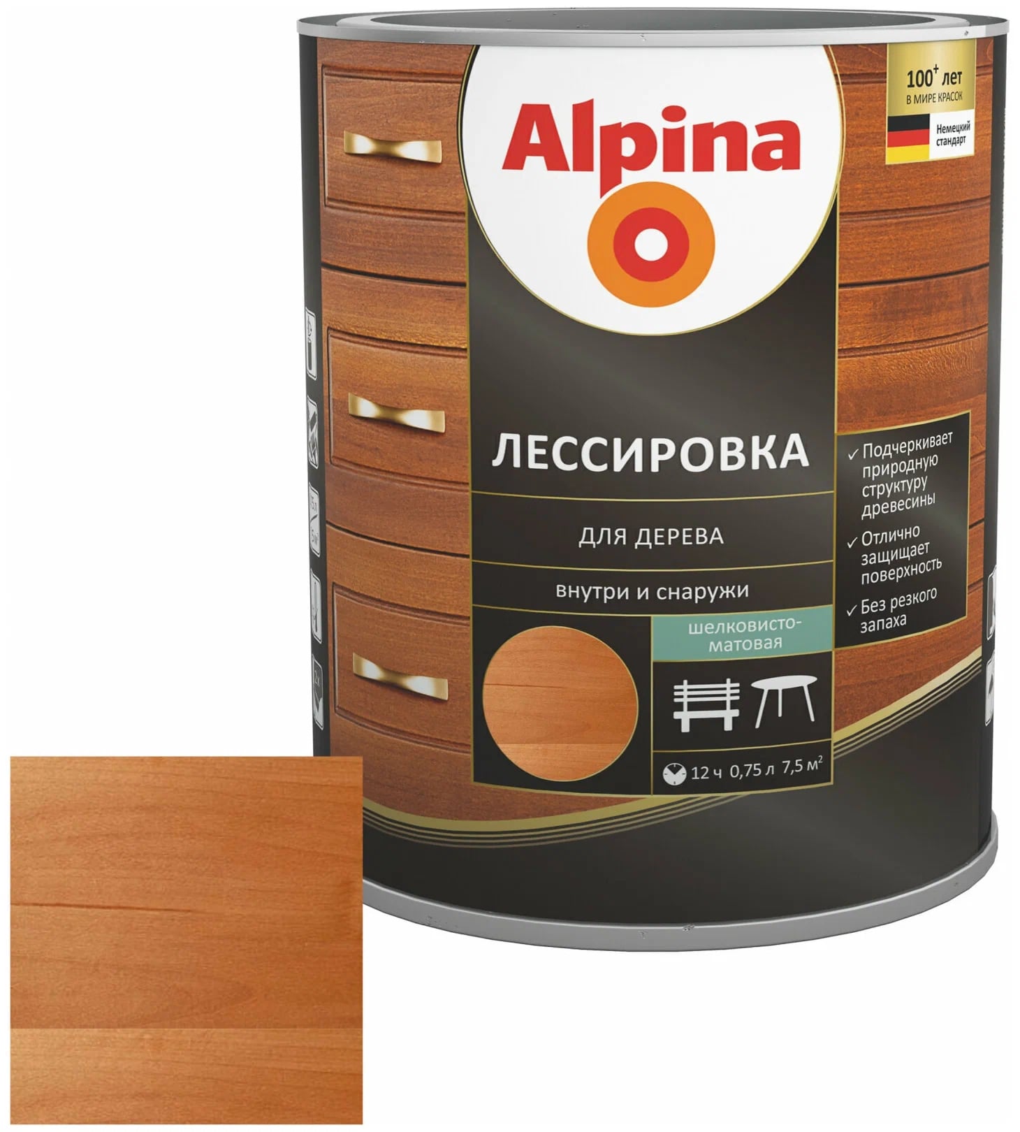 Лессирующий состав Alpina Лессировка для дерева, Рябина, 0,75 л