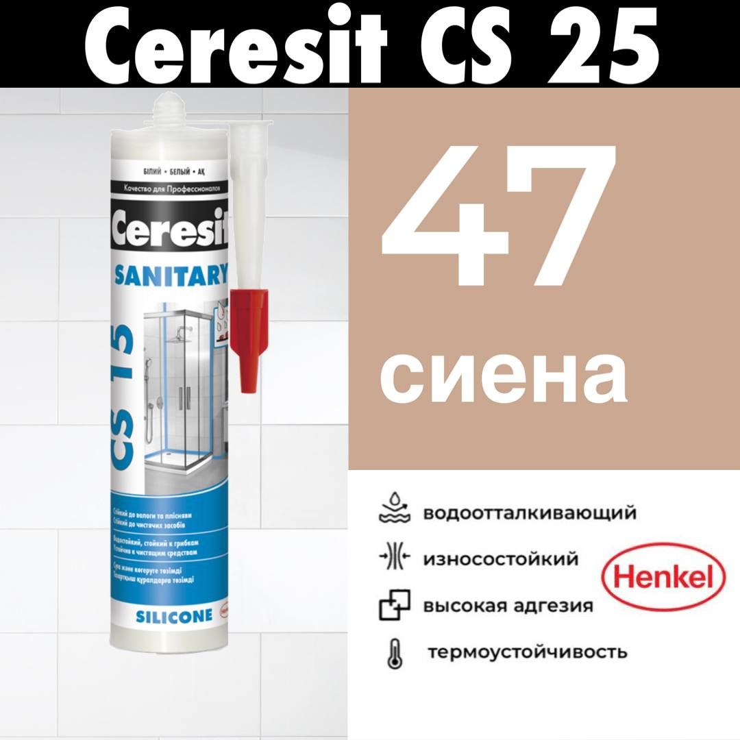 Затирка-герметик Церезит CS25 силиконовый санитарный 47 сиена 280мл (12 шт)