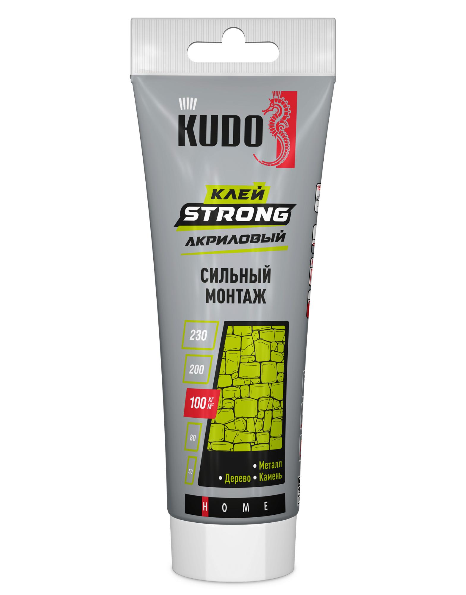 Высококачественный универсальный акриловый клей KUDO® «STRONG» специально разработан для быстрого и надёжного монтажа изделий из древесины, ДСП, ДВП, EPS, XPS, ПВХ и UPVC на бетонные, кирпичные, каменные, металлические, оштукатуренные и деревянные поверхности.