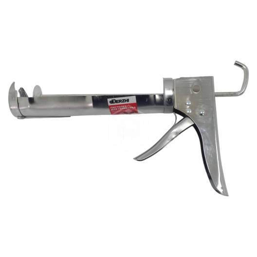 Пистолет д/герметика полукорп.хромированный DERZHI 310мл зубч. шток 7мм (1/24) 388640