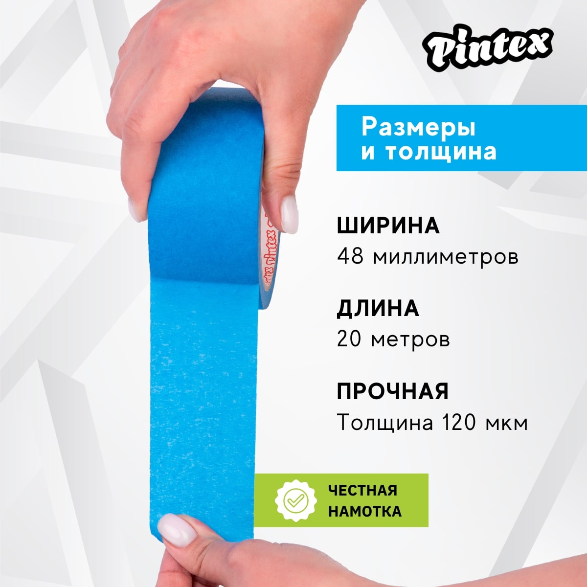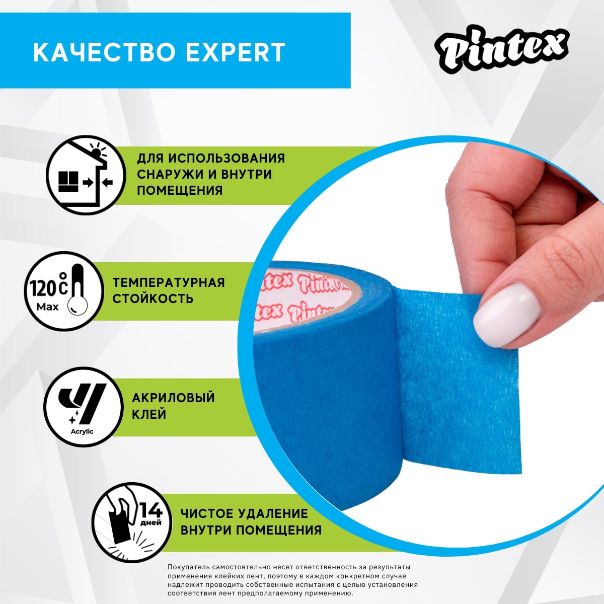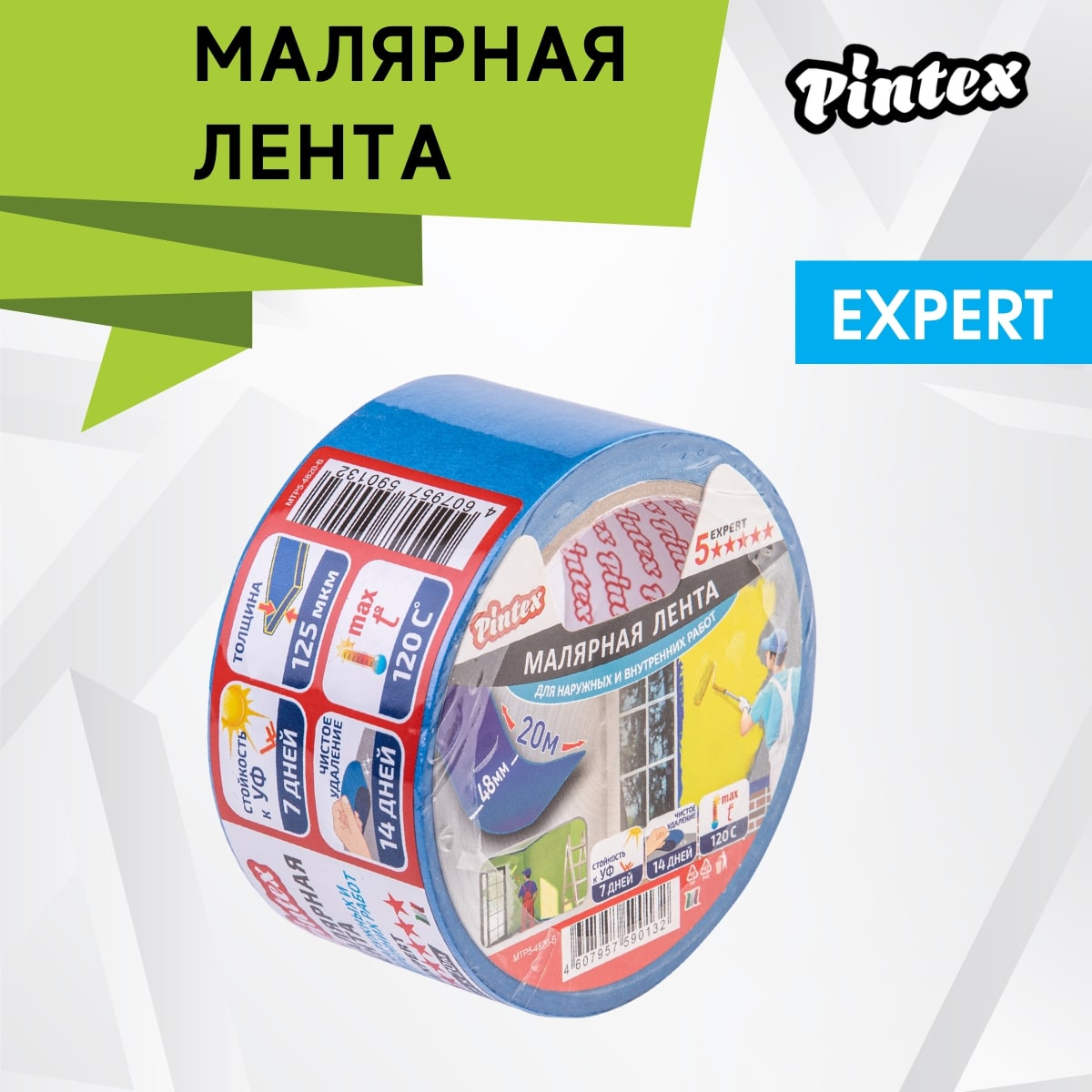 PINTEX EXPERT малярная самоклеющаяся бумажная крепп лента (скотч) для ответственных проектов. Рекомендуется для взыскательных потребителей, а также для работ снаружи и внутри помещения. Обеспечивает чистое удаление до 14 дней и четкий край окрашивания. Честная намотка - заявленные размеры соответствуют фактическим. Не требуются ножницы - рвется руками.