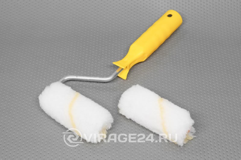 Используется с водоэмульсионными ,масляными красками ,алкидными,акриловыми эмалями,грунтовками на алкидной основе.Состав:изготовлен из тканного полиамида .высота ворса 10.5 мм.Плотность 860 гр./кв.м.Пластиковая ручка + 2 ролика.