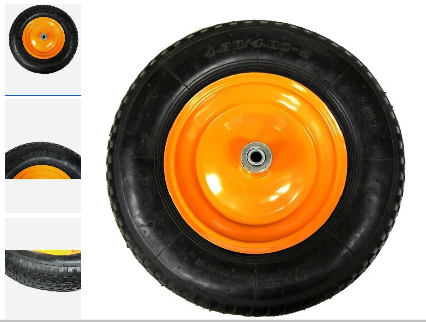 Колесо пневматическое для строительной тачки это легкость хода при перевозке груза по твердому покрытию. Шина колеса с нанесённым протектором для наилучшего сцепления с поверхностью.