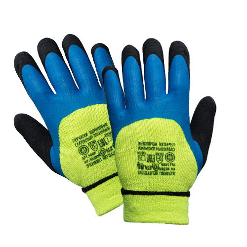 Перчатки акриловые с усиленным пальцем вспененн.латекс (салатово-синие) арт.6327