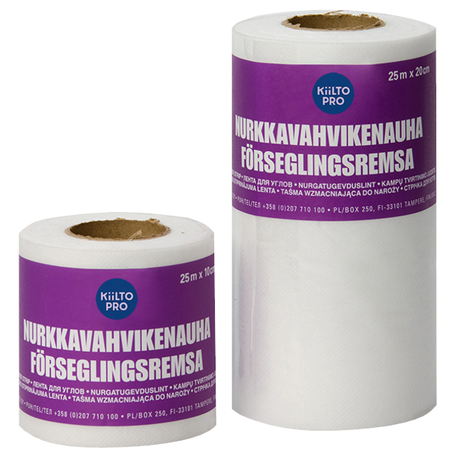 лента для упрочнения углов при монтаже системы гидроизоляции ''Fiberpool''.Требования для работы с лентой для гидроизоляции Keragum / Nurkkavahvike • температура основания и помещения – не ниже +10...+25°С • влажность бетонного основания - не более 90% относительной влажности Существующие ус��овия, такие как температура помещения, качество и влажность обрабатываемой поверхности значительно влияют на процесс высыхания. Поэтому цифровые данные наших рекомендаций можно считать только исходными. Основание должно быть прочным, ровным, чистым, сухим и подходить для влажного (мокрого) помещения: бетон, газо- и пенобетон, поверхности, выровненные растворами на цементной основе, влагостойкие фанера и ГКЛ, сложные поверхности (старая кафельная плитка, старые ПВХ- покрытия). Возможные устройства для утепления пола устанавливаются под гидроизоляционным материалом. Применение ленты для упрочнения углов гидроизоляции Keragum / Nurkkavahvike Стены: Неровные основания отшлиф
