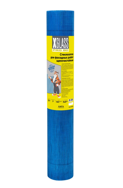 Сетка стеклотканевая фасадная X-Glass Pro 50 5x5 мм, 1x50 м, 160 гр/кв.м УТ0001022это тканый материал, полученный путем переплетения стеклянных (алюмоборосиликатных) нитей основы и утка, с определенным размером ячеек и пропитанный щелочестойким составом.