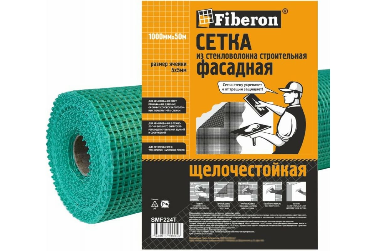 Сетка фасадная Fiberon стекловолокно 1х50 м, ячейка 5х5 мм, зеленая,предназначена для увеличения прочности обрабатываемых поверхностей, для армирования мест примыкания, для шпатлевочных и гидроизоляционных работ. Сетка щелочестойкая, долговечная, защищает поверхность от образования трещин. Подходит для армирования наружных поверхностей.