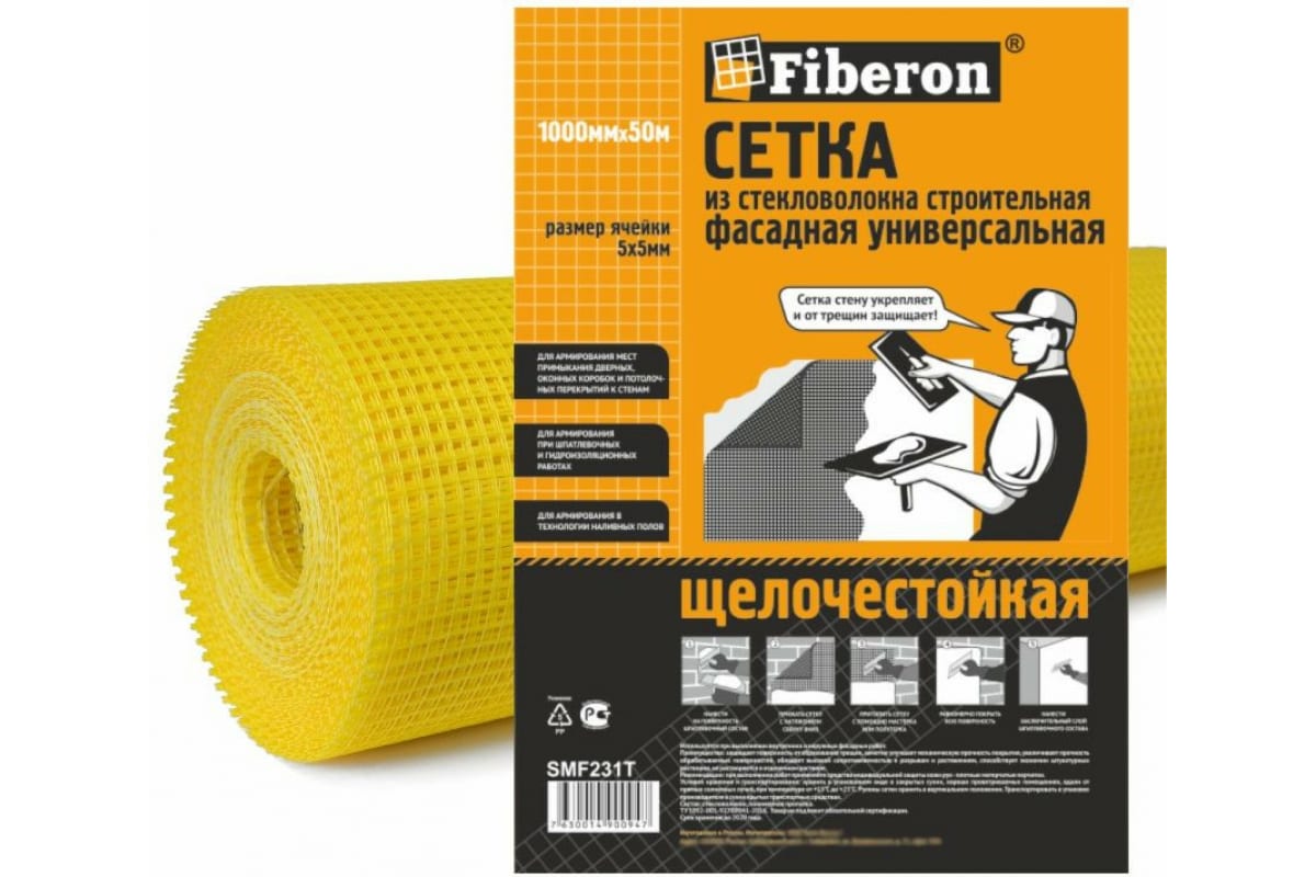 Сетка универсальная фасадная Fiberon стекловолокно (1х50 м, ячейка 5х5 мм, желтая, 4 шт) предназначена для увеличения прочности обрабатываемых поверхностей, для армирования мест примыкания, для шпатлевочных и гидроизоляционных работ. Сетка щелочестойкая, долговечная, защищает поверхность от образования трещин. Подходит для армирования наружных поверхностей.