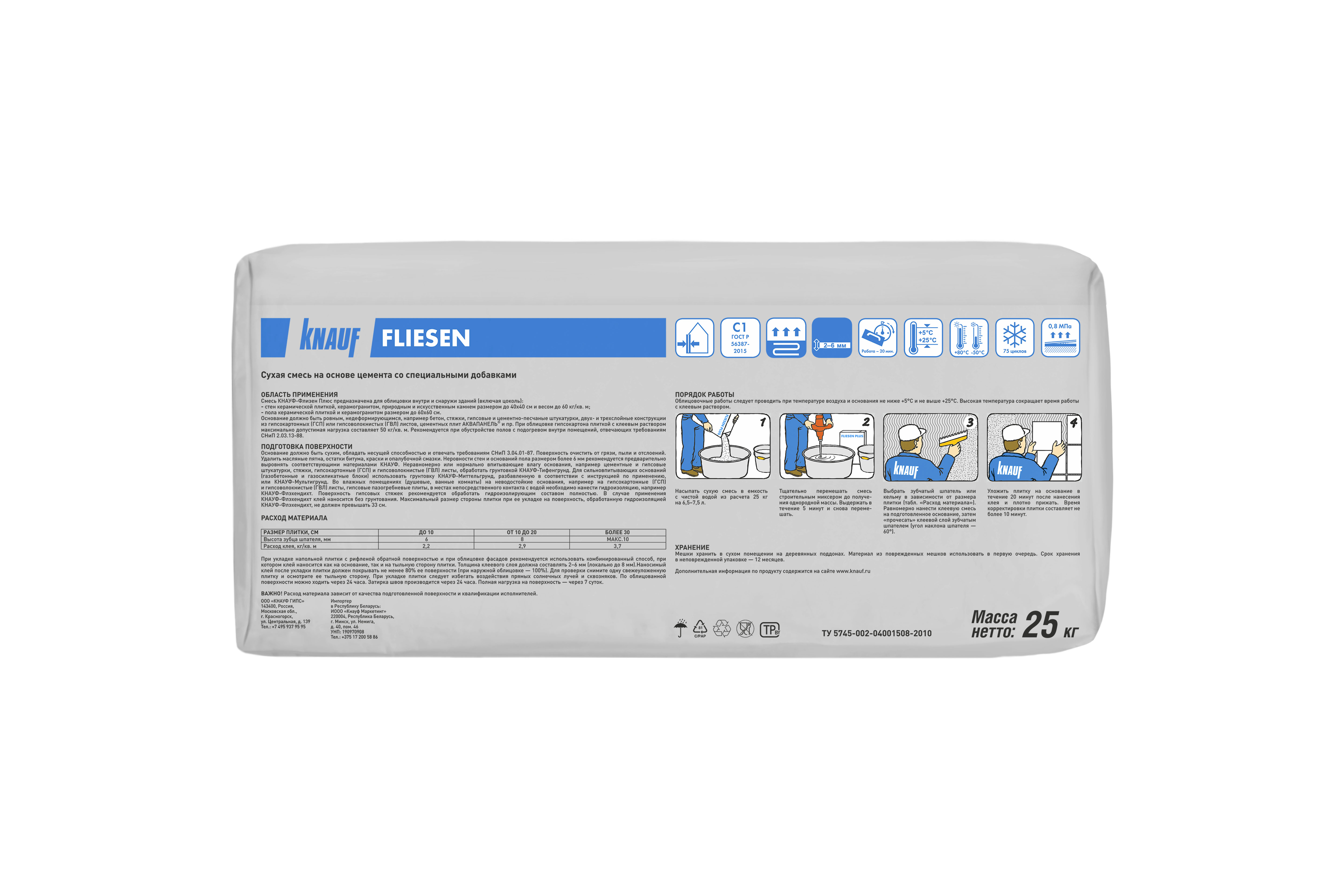 Клей плиточный КНАУФ Флизен плюс 25 кг