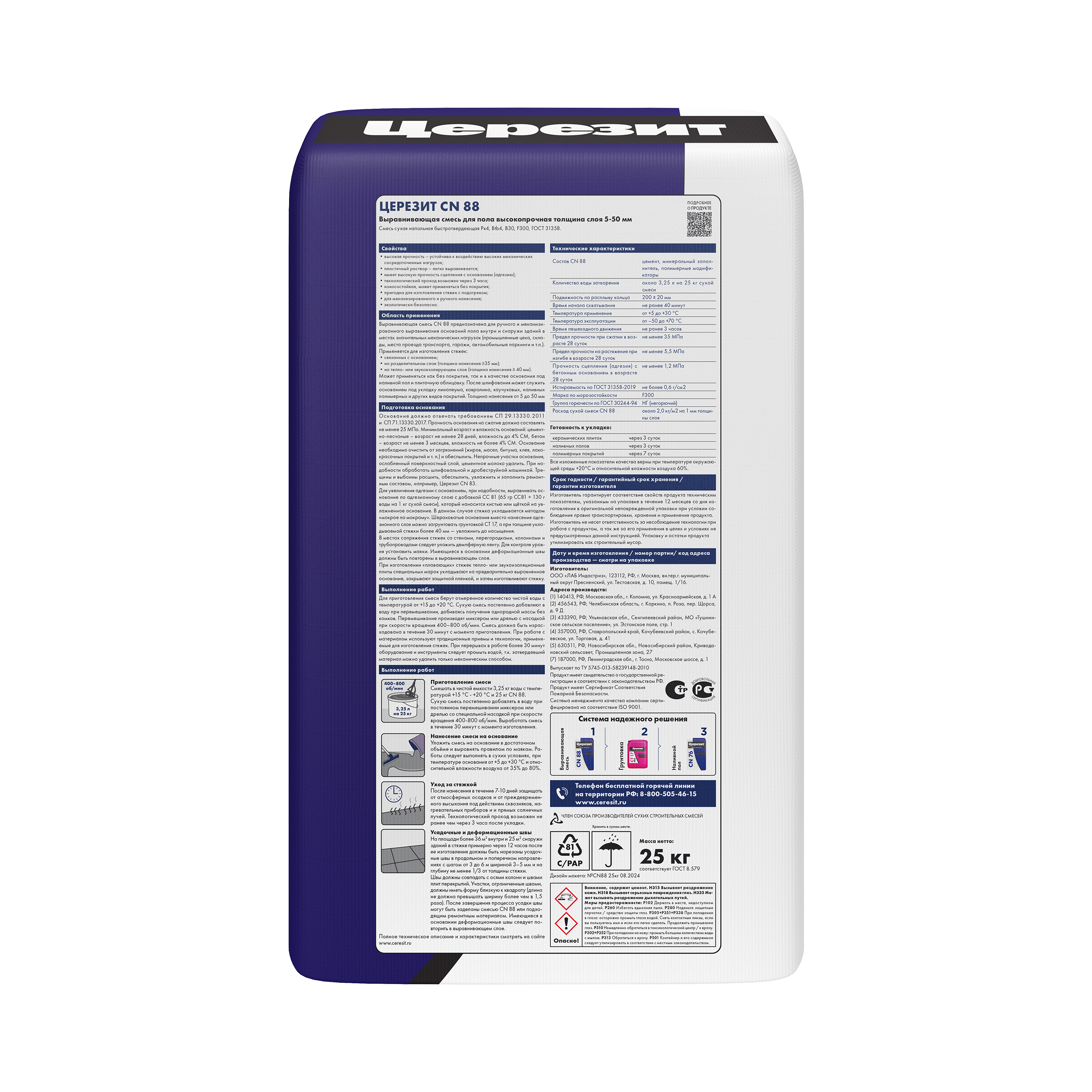 CN 88/25 Высокопрочная цементная смесь для выравнивания пола и изготовления стяжек 25 кг (48)