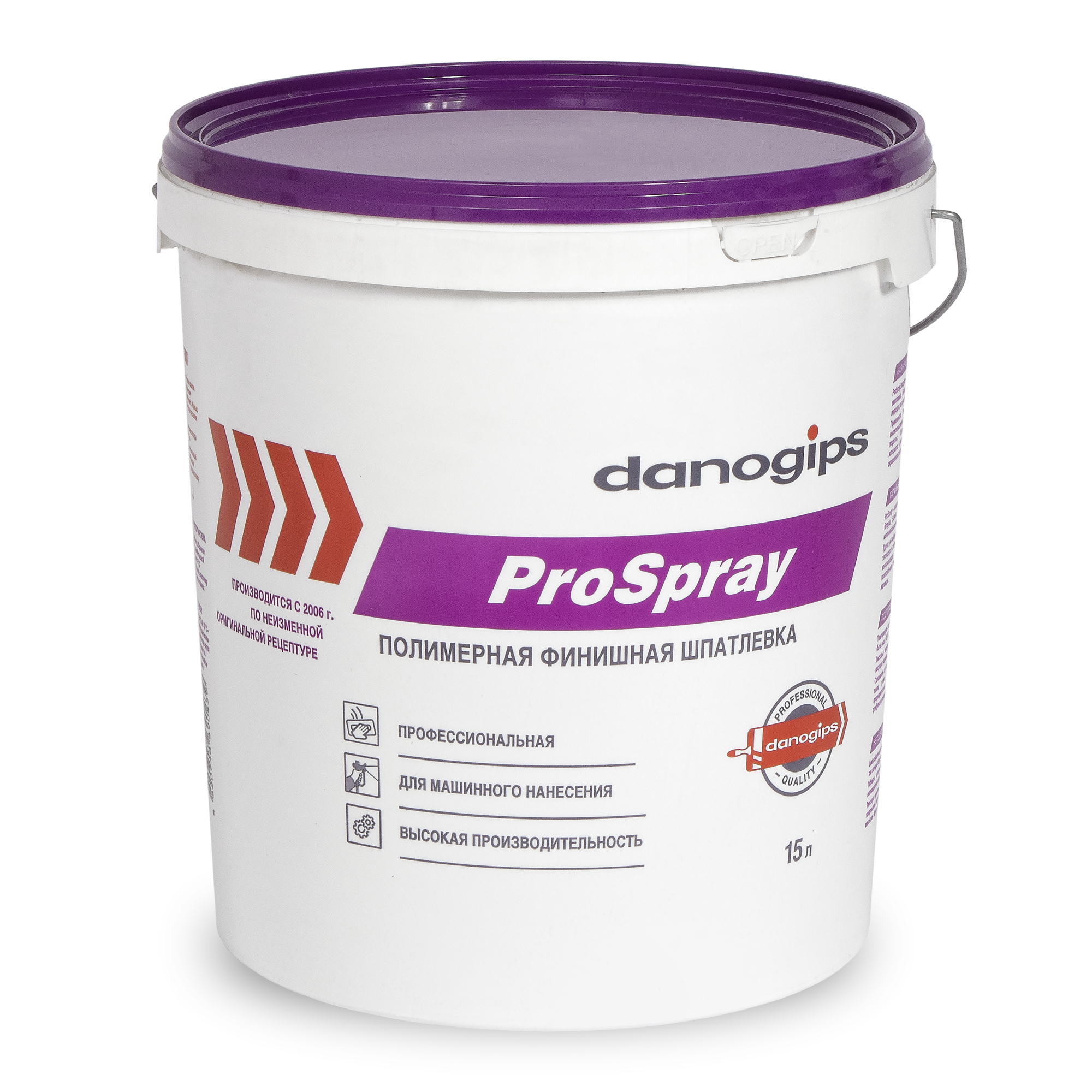 Готовая к применению полимерная финишная шпатлевка для машинного нанесения. В ее основе – новая формула, оптимизированная для машинного безвоздушного нанесения (равномерность нанесения шпатлевки). Шпатлевка ProSpray может использоваться на всех типах минеральных поверхностей. Скорость обработки поверхности, по сравнению с ручным нанесением, увеличивается в 8-10 раз. Возможно обрабатывать поверхности высотой до 3,5 метров (без установки лесов), при использовании инструмента Sheetrock®. Поверхности на которые наносится шпатлевка ProSpray должны быть сухие и обеспыленные. Каждый последующий слой шпатлевки наносится после полного высыхания предыдущего слоя. Температура в помещения должна быть выше 13 градусов. Замерзшую шпатлевку оттаивать при комнатной температуре, не ускорять процесс оттайки!