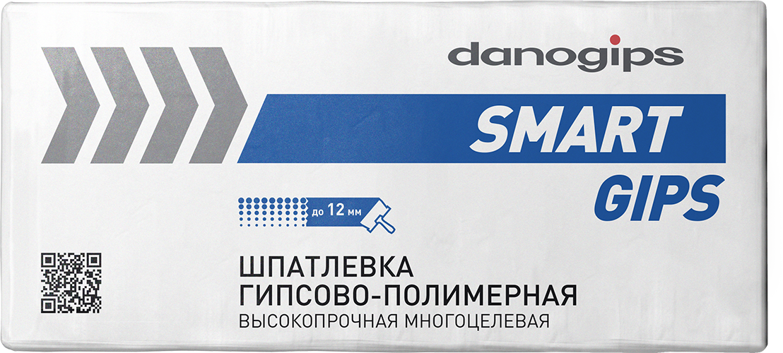 Danogips SmartGips - гипсо-полимерная шпатлевка, предназначенная для выравнивания в плоскость бетонных поверхностей, гипсокартонных листов, гипсовых и цементных штукатурок, а также заделки стыков всех видов кромок и дефектов гипсовых плит: заделки стыков, сколов, глубоких царапин и мест крепления шурупами листов ГКЛ и ГВЛ; заделки дефектов гипсовых и бетонных поверхностей, сплошного шпатлевания листов ГКЛ, ГВЛ, гипсовых пазогребневых плит, оштукатуренных поверхностей и оснований из бетона; склеивания и шпатлевания гипсовых элементов. Для внутренней отделки.