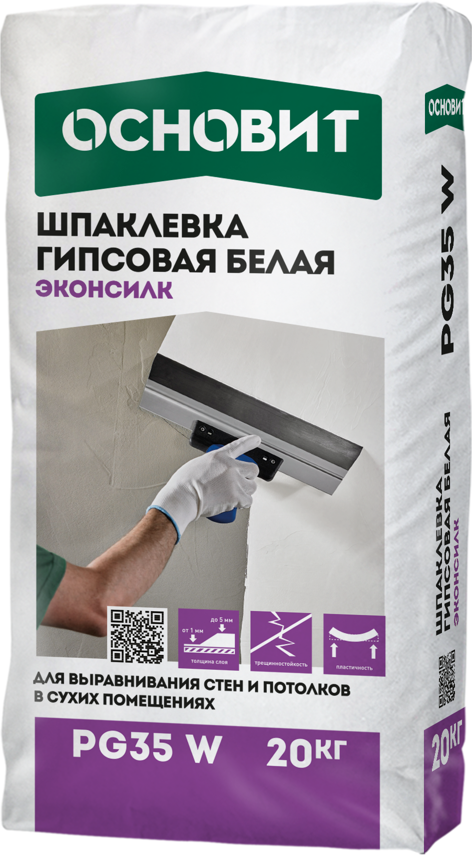Шпаклевка ОСНОВИТ ЭКОНСИЛК PG35 W предназначена для выравнивания стен и потолков, для заделки швов ГКЛ и ГВЛ.