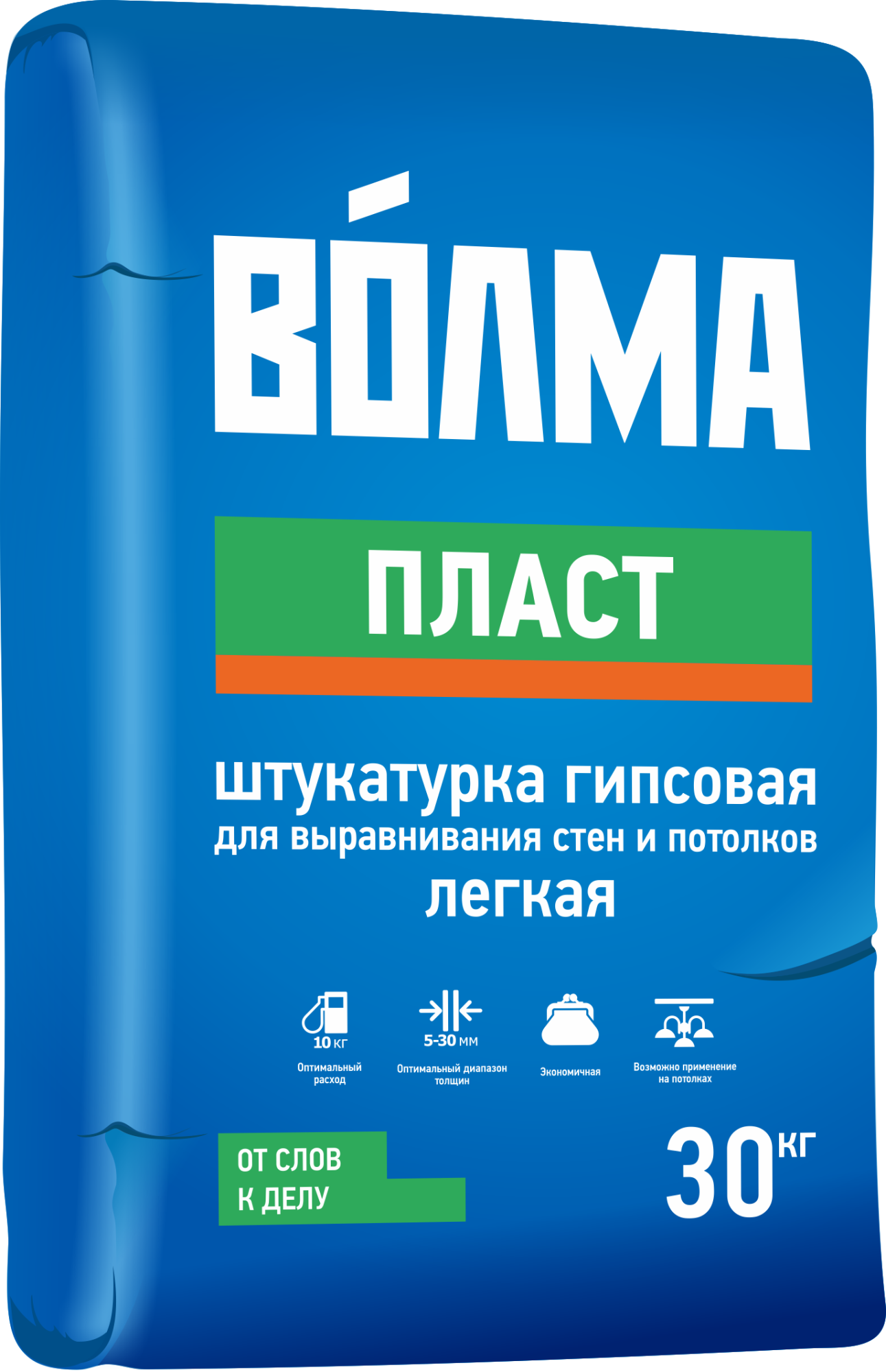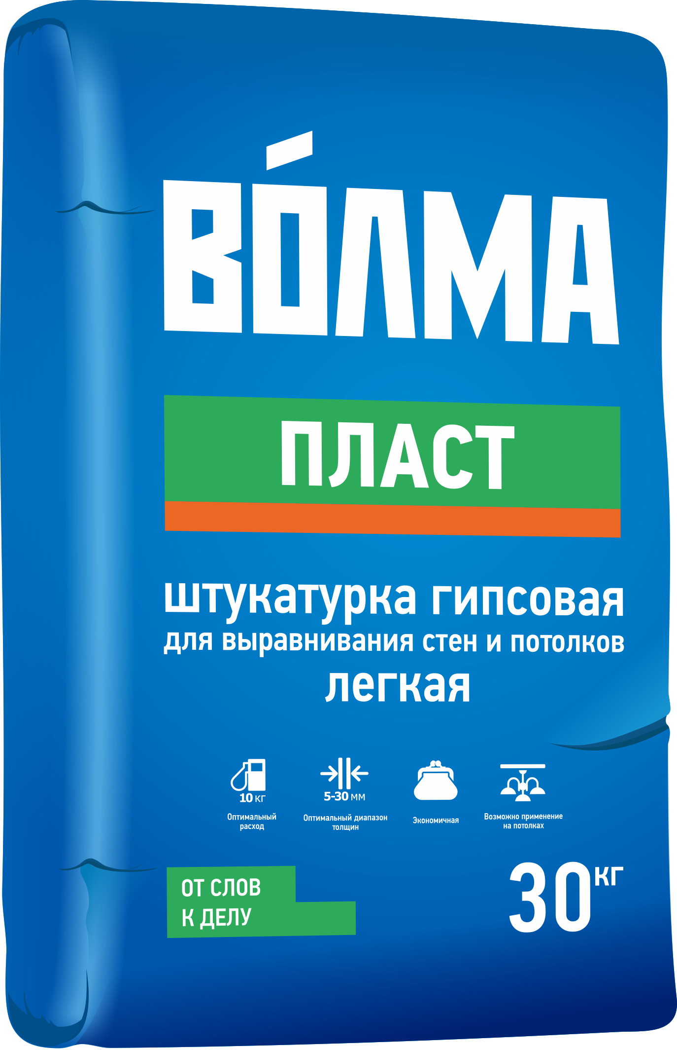 «ВОЛМА-Пласт» - сухая штукатурная смесь на основе гипсового вяжущего и заполнителя с применением минеральных и химических добавок, обеспечивающих высокую адгезию, водоудерживающую способность и оптимальное время работы.