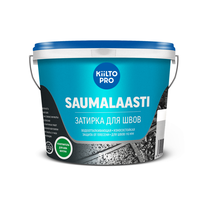 Kiilto Saumalaasti – затирка c cверхнизким выделением вредных летучих веществ для заделки швов между кафельными и клинкерными плитками, а также между другими керамическими материалами. Ширина шва 1-6 мм. Глубина шва должна быть не менее 3 мм.