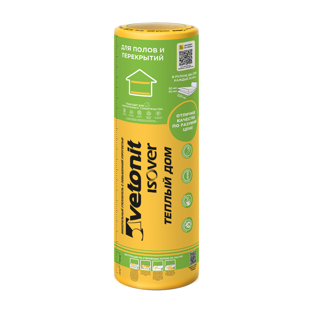 Vetonit (Isover)Теплый Дом-ТВИН-50х1220х8200/Е/К (2рул/20,01м2/1,000м3/упак), 30 шт/пал рул
