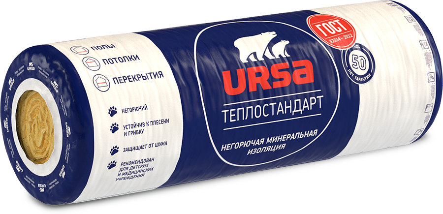 Маты теплоизоляционные URSA ТеплоСтандарт 2*10000*1220*50 (1,22м3 - 24,4м2/пач, 24шт/пал) рулон