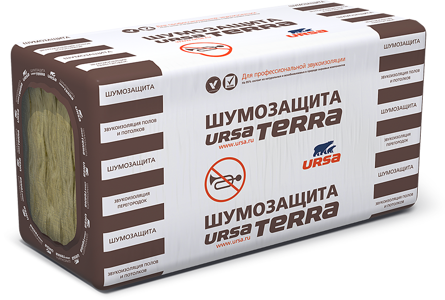 Утеплитель URSA TERRA 36 PN (5) 1250-610-100мм Шумозащита (0,381м3-3,81м2/пач.; 40 шт/пал) - плита