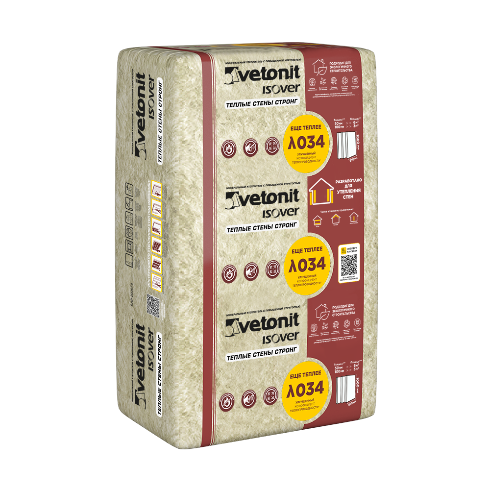 Vetonit (Isover)Теплые Стены Стронг-100/ 610х1000/Е/К (3,05м2/0,305м3/5шт/уп)40 уп/пал