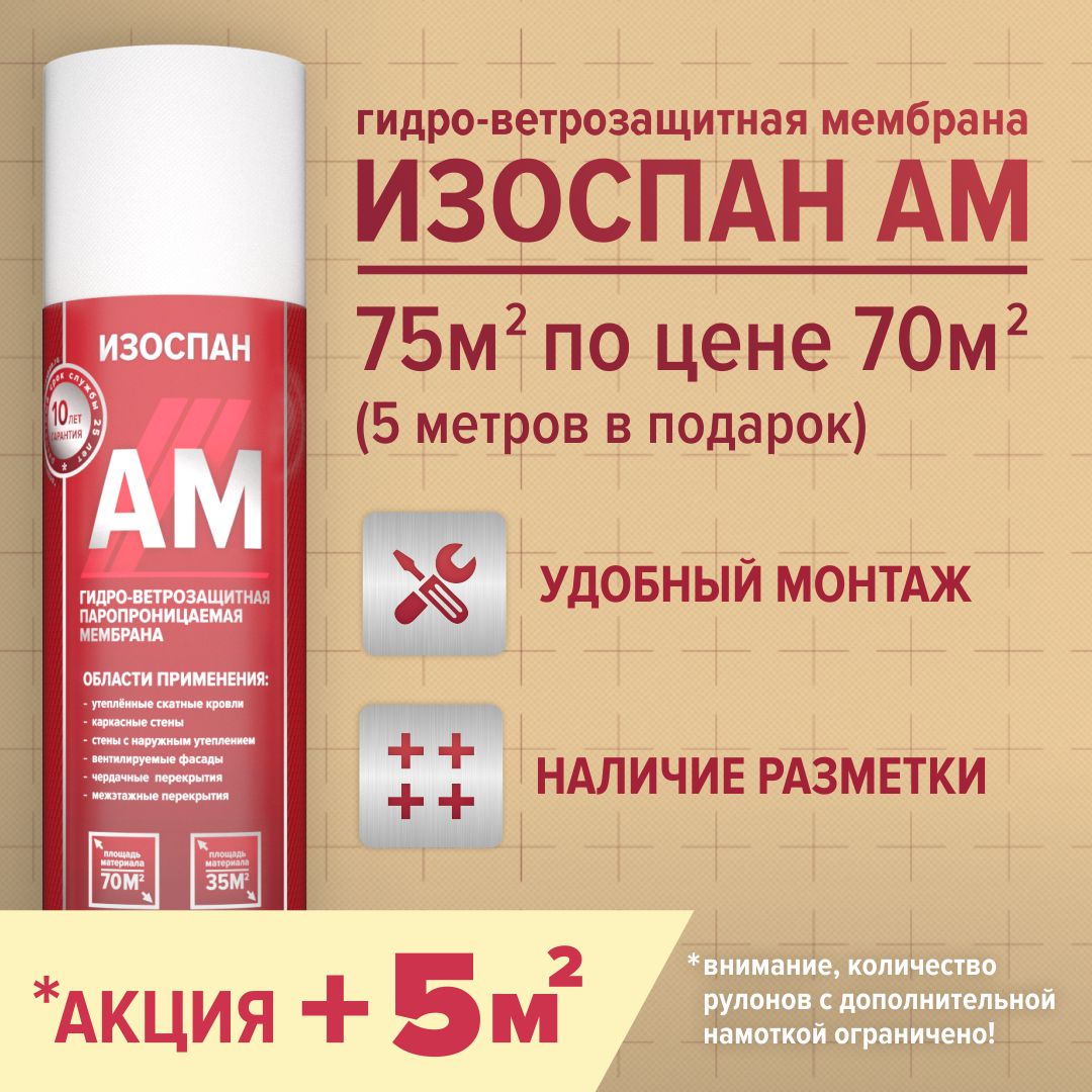 ИЗОСПАН АМ (75м2) гидро-ветрозащитная мембрана