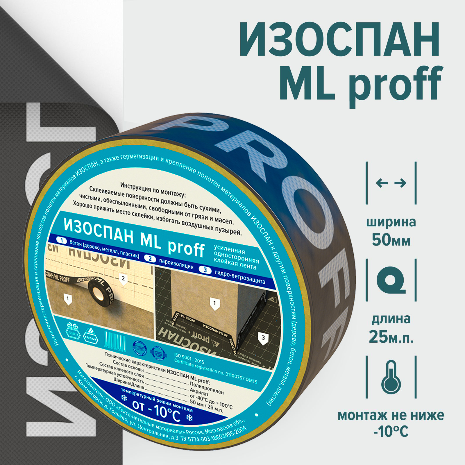 Изоспан МL proff односторонняя усиленная супер-клейкая лента 50 мм, 25 погм. (50м/п) 15мм