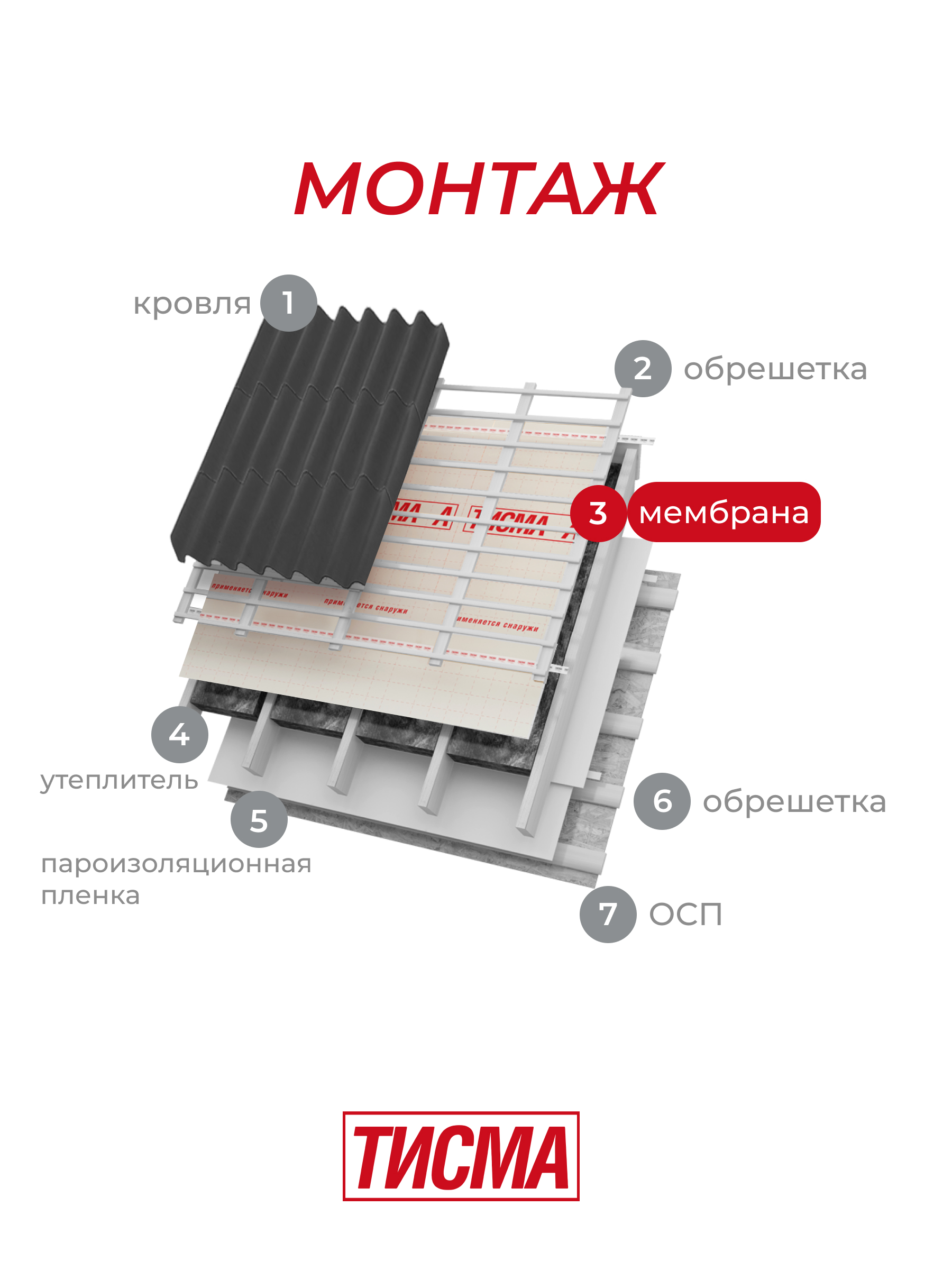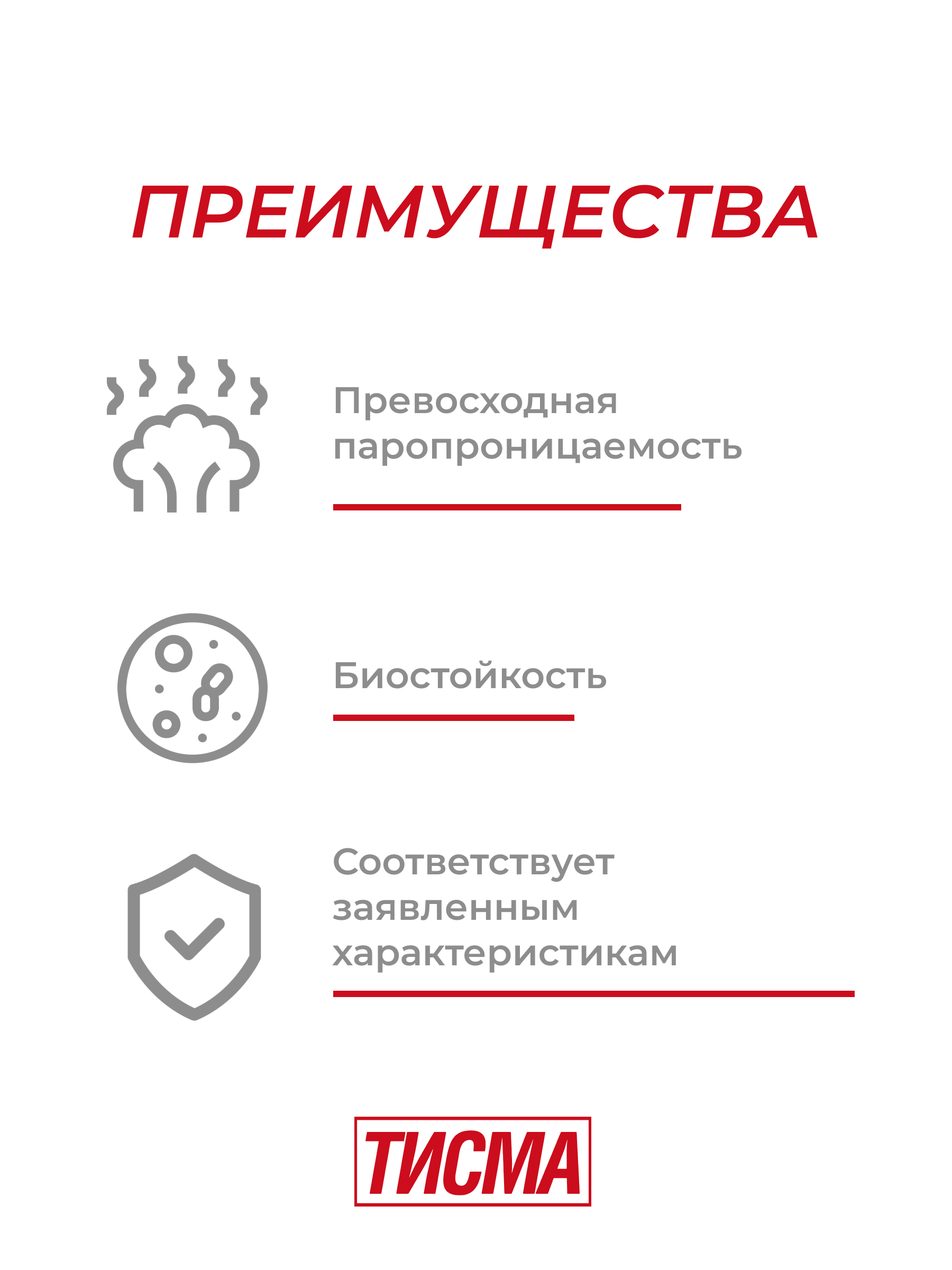 Ветро- влагозащитная мембрана ТИСМА-А предназначена для защиты утеплителя и всей конструкции здания от воздействия окружающей среды. Она водонепроницаема, но при этом пропускает пар, поэтому под ней не возникнет парникового эффекта и конструктив останется сухим.