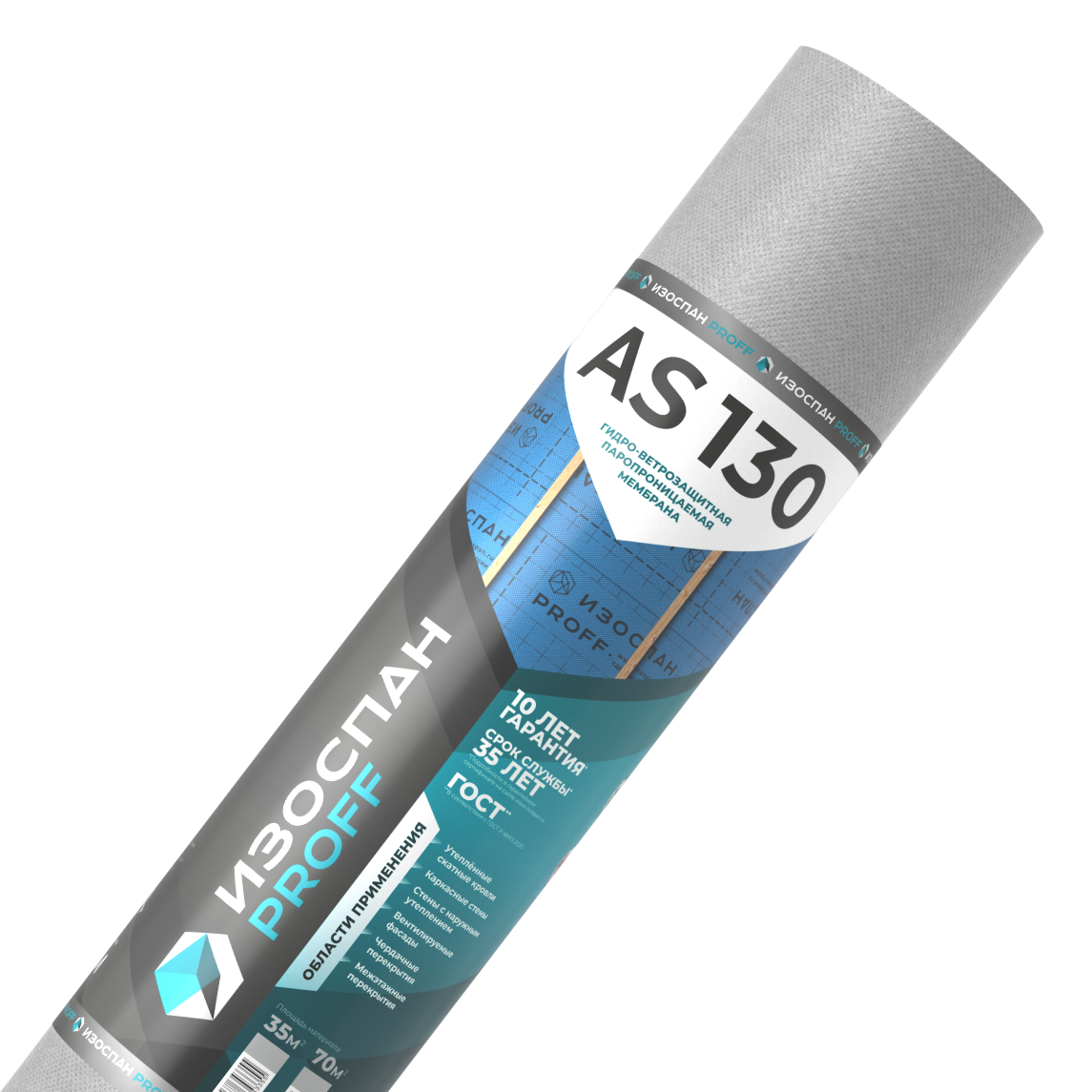 ИЗОСПАН АS 130 prof гидро-ветрозащитная трехслойная мембрана, высота 1,6 м (70м2)